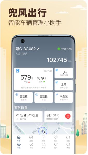 兜風(fēng)APP是深圳駕控科技有限公司開發(fā)的一款智能車輛管理軟件。軟件擁有非常多的功能,包括:當前位置信息、油費估算、車輛違章查詢、車輛部件保養(yǎng)狀態(tài)、胎壓監(jiān)控等。此外,用戶可以在軟件里查看行車記錄,一手掌握汽車的情況,避免安全隱患,讓出行更加安全。