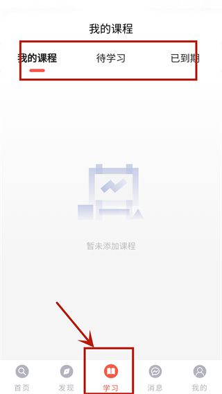 5、在學(xué)習(xí)頁(yè)面可以查看當(dāng)前的課程,以及待學(xué)習(xí)的課程。