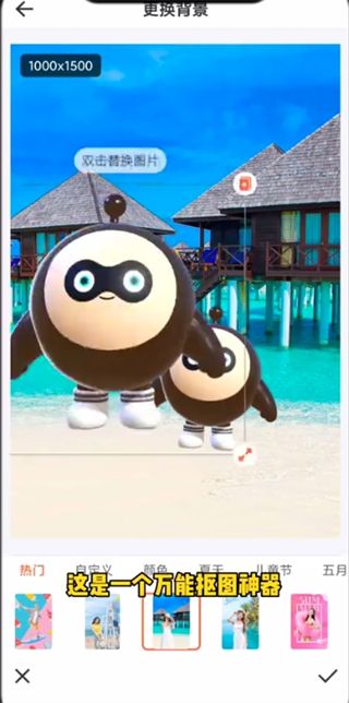 5、然后再倒入其他素材,點擊手動摳圖,去除你不想要的背景。