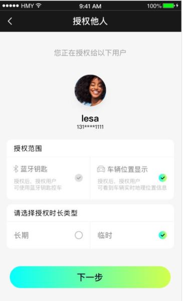 4、在“授權(quán)他人”模塊,添加被授權(quán)人信息,選擇授權(quán)范圍與時(shí)長(zhǎng),輕松實(shí)現(xiàn)車(chē)輛共享使用,讓出行更加便捷靈活。