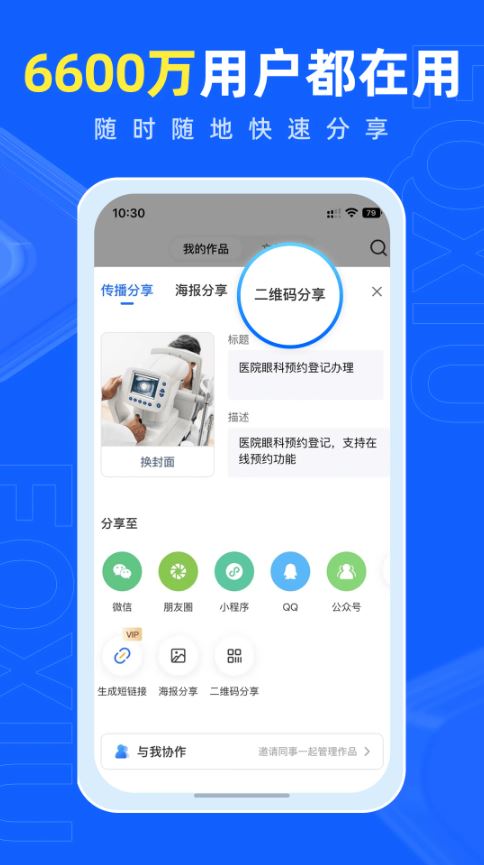 h5作品可一鍵分享至微信、微博、qq等社交媒體,方便傳播。
