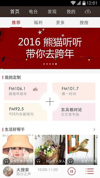 熊貓聽聽app是一款最新推出的手機(jī)電臺軟件,專為四川地區(qū)用戶群體量身打造。提供包括旅游、生活、新聞、經(jīng)濟(jì)、城市之音、天府之聲等音頻,24小時不間斷實(shí)時播出,各類當(dāng)?shù)厝藲獬叩墓?jié)目都能在這里聽到。在熊貓聽聽里用戶不僅能找到志同道合老鄉(xiāng)同好,還可以和知名電臺主持人和DJ親密互動。更有好玩的游戲中心讓你邊玩邊聽,從此收聽電臺不再寂寞。