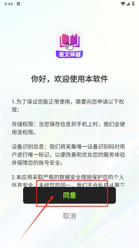 1、下載安裝軟件,需要同意相關(guān)使用權(quán)限后進入。