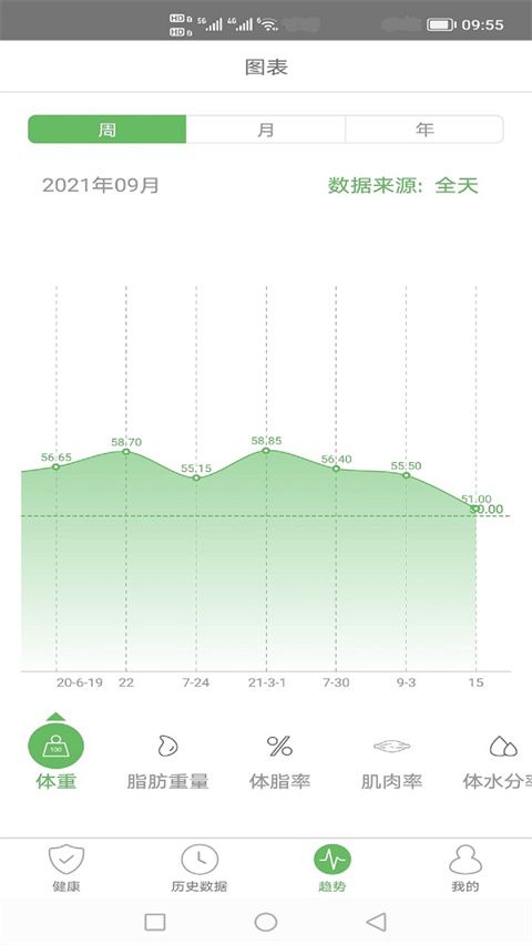 6、數(shù)據(jù)分析:可以隨便的選擇和變換每周、一月、每一年的身心健康表格