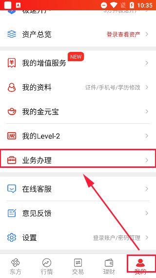 您好,您可登錄app,進(jìn)入[我的]-[業(yè)務(wù)辦理],查看所有在線辦理的業(yè)務(wù)。目前支持的業(yè)務(wù)有:滬深港股通開通、天添贏開通、OTC賬戶開通、東方匯、風(fēng)險警示股票開通、債券逆回購開通等。