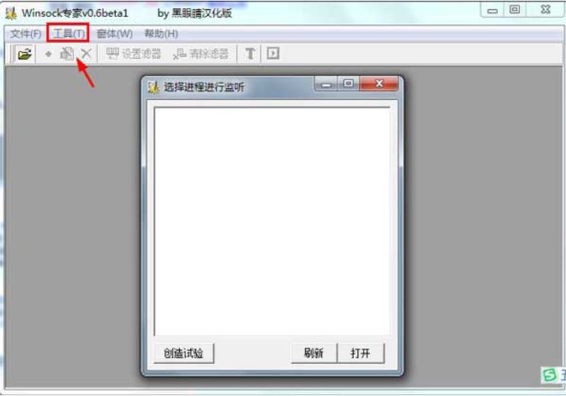 1、首先運行本軟件和需要監(jiān)視的網(wǎng)絡(luò)應(yīng)用程序,然后點擊文件圖標,選擇正確的程序打開,這時候會創(chuàng)建一個子窗口,使用同樣的方法您可以同時監(jiān)視多個進程。