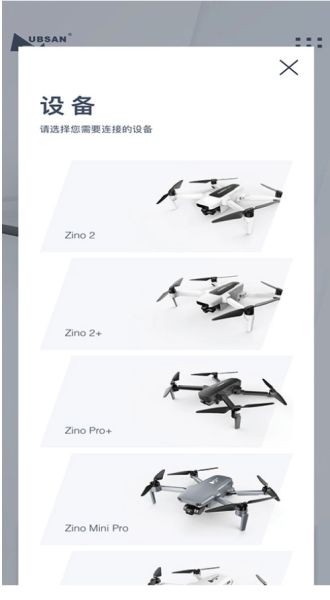 2、成功登錄賬號(hào)之后,在首頁點(diǎn)擊無人機(jī),然后根據(jù)自己購買的無人機(jī)型號(hào)選擇對(duì)應(yīng)的設(shè)備(該軟件目前支持的設(shè)備包括Zino 2,Zino 2+,Zino Pro+,Zino mini Pro,Zino mini SE,Zino mini,HUBSAN MINI,ACE SE以及HUBSAN ACE)。