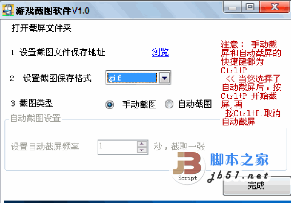 游戲截屏小師傅是一款綠色免費的屏幕截取工具,可以在游戲全屏的情況下截取游戲截圖,該游戲截屏工具操作簡單,玩家只需按默認快捷鍵ctrl + p即可開始截圖。