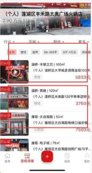 3.查看商鋪--新增行業(yè)、面積、租金快捷選項(xiàng)