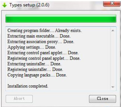 3.Types安裝完成,單擊Close,退出安裝向?qū)?/p>
