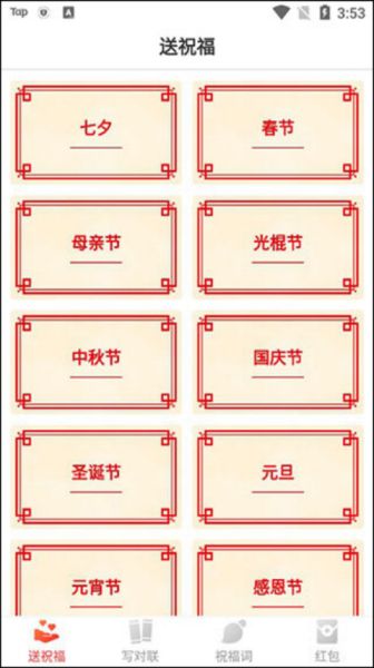 在本站下載安裝并打開軟件,可以看到涵蓋了各大節(jié)假日的祝福語;