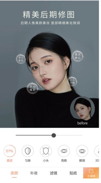 無他相機(jī)是一款非常受女孩子歡迎的手機(jī)拍照美顏應(yīng)用,軟件針對時(shí)下女性用戶的美顏美妝需求,利用獨(dú)家快速精準(zhǔn)的人臉定位及三維重構(gòu)技術(shù),讓手機(jī)屏幕變身成為最專業(yè)有趣的虛幻魔鏡。用戶可以通過無他相機(jī)拍攝,拍好不用P,即可體驗(yàn)完美的臉型膚質(zhì),多種妝容,以及各種有趣、搞怪、萌萌噠的動(dòng)態(tài)特效。