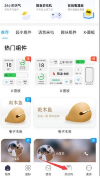 1、打開軟件進(jìn)入首頁,找到小組件功能,點(diǎn)擊進(jìn)入組件;