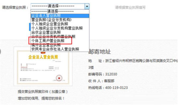 3)、個(gè)體經(jīng)營戶:需要上傳個(gè)體工商戶營業(yè)執(zhí)照和營業(yè)執(zhí)照中注明的經(jīng)營者的身份證。