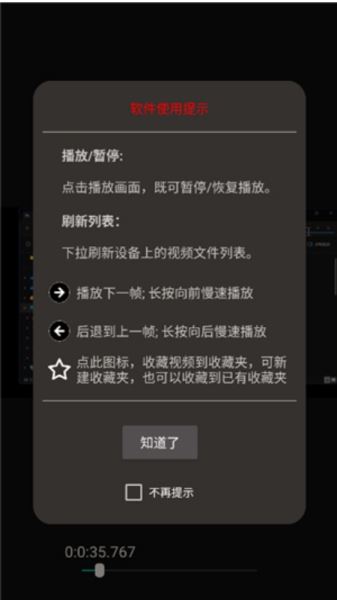 軟件為用戶提供了關(guān)于視頻幀播放的使用提示,讓你查看簡單的用法,輕松查看提示內(nèi)容。