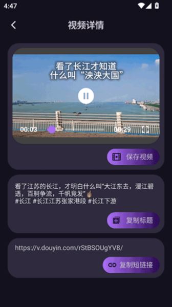 1、首先這軟件所有功能完全免費(fèi),軟件中沒(méi)有登錄和付費(fèi)渠道,使用也很簡(jiǎn)單,例如你復(fù)制抖音上的視頻鏈接后再打開(kāi)這個(gè)軟件就會(huì)識(shí)別鏈接中的方案和視頻
