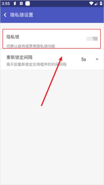 4、最后給你需要的上隱私鎖的應(yīng)用開啟即可。