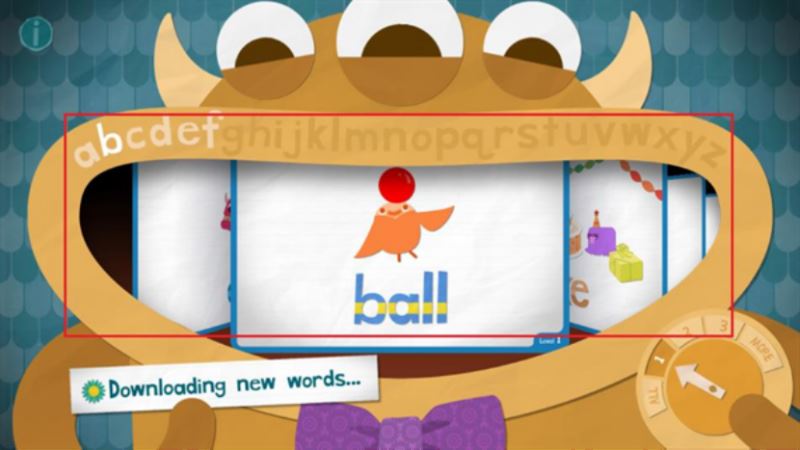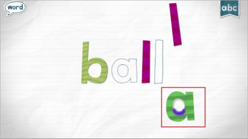 2、孩子拖動字母到正確位置時,字母會變成活潑的小動物并發(fā)出讀音,拼寫完成后單詞會做鬼臉,強化記憶。