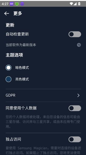 手機版Magician的主要界面沒有“正品驗證”選項,但當您成功地連接、識別和管理一個便攜式 SSD 時,這本身就是一個初步的真?zhèn)闻袛噙^程。只有三星的正版便攜式 SSD 才能被 Magician App正確識別并允許進行密碼和指紋等高級設(shè)置。如果硬盤是假冒的,它通常無法被軟件正確識別和管理。