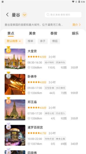 收錄泰國2000+景點(diǎn)信息,包含開放時(shí)間、門票價(jià)格、交通方式、游客評(píng)價(jià)等維度