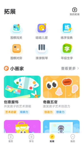 1、進(jìn)入軟件首頁可以看到有各種體驗課程可以購買,比如圍棋、美術(shù)課程,如果想進(jìn)一步深入學(xué)習(xí),可以看一下進(jìn)階版