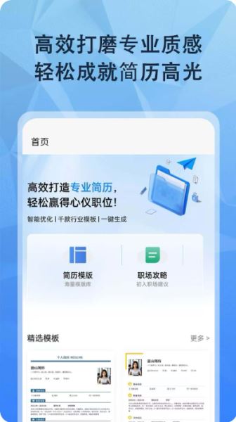 簡(jiǎn)歷網(wǎng)APP是一款集簡(jiǎn)歷模板下載、簡(jiǎn)歷編輯制作、求職攻略學(xué)習(xí)于一體的綜合性求職輔助工具,致力于為用戶提供從模板選擇到內(nèi)容優(yōu)化的全流程簡(jiǎn)歷制作服務(wù)。無論是應(yīng)屆畢業(yè)生、職場(chǎng)新人,還是尋求職業(yè)轉(zhuǎn)型的資深人士,都能在APP中找到適合自己的模板資源,并通過簡(jiǎn)潔直觀的操作界面快速完成專業(yè)簡(jiǎn)歷的制作。