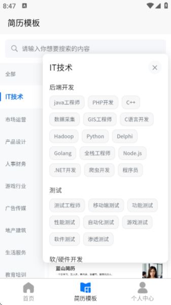 針對(duì)不同行業(yè)的招聘偏好,APP開發(fā)了差異化模板體系。