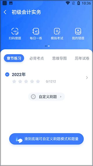 2、在首頁下方可以進行專屬題庫練習,里面包含了每日一練、模擬考試、我的錯題等專項訓(xùn)練。