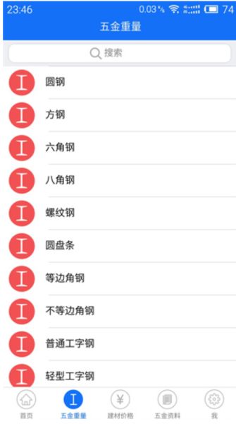 藍(lán)光五金手冊(cè)手機(jī)版是一款提供建設(shè)行業(yè)常用五金材料理論重量、規(guī)格、密度、計(jì)算公式、市場(chǎng)價(jià)格等信息的實(shí)用工具。國(guó)內(nèi)首創(chuàng)技術(shù),實(shí)時(shí)、動(dòng)態(tài)更新,無(wú)需升級(jí)軟件就可以輕松獲取最新五金資料,并且本軟件永久免費(fèi)使用。藍(lán)光五金手冊(cè)主要功能有提供圓鋼、方鋼、六角鋼、八角鋼、螺紋鋼、圓盤條、等邊角鋼、不等邊角鋼、普通工字鋼、輕型工字鋼、普通槽鋼、輕型槽鋼、扁鋼、薄鋼板、中厚鋼板、花紋鋼板等100多種鋼材理論重量。還有鍍鋅鋼管、焊接鋼管、鋼塑復(fù)合管、無(wú)縫鋼管、不銹鋼管、鑄鐵管、水煤氣管、水泥管、球墨鑄鐵管材料重量計(jì)算公式、常用材料密度、室內(nèi)外鍍鋅鋼管管件單價(jià)、室內(nèi)外焊接鋼管管件單價(jià)、鑄鐵排水管管件單價(jià)、塑料管件單價(jià)、電力電纜管、原木材積表、原條材積表等知識(shí)信息。而且,藍(lán)光五金手冊(cè)app還提供材料密度、重量計(jì)算公式、換算、管徑對(duì)照表、管件單價(jià)、圖形公式、球墨鑄鐵管件單價(jià)、防火閥、風(fēng)口單價(jià)計(jì)算公式等常用數(shù)據(jù),幾十種分類建筑工程材料市場(chǎng)價(jià),搜索方便,每月同步更新,用于非國(guó)標(biāo)時(shí)按國(guó)標(biāo)算法進(jìn)行計(jì)算。相信很多在建筑方面工作的人都可以用到,有需要的朋友可以下載藍(lán)光五金手冊(cè)手機(jī)版看看哦。