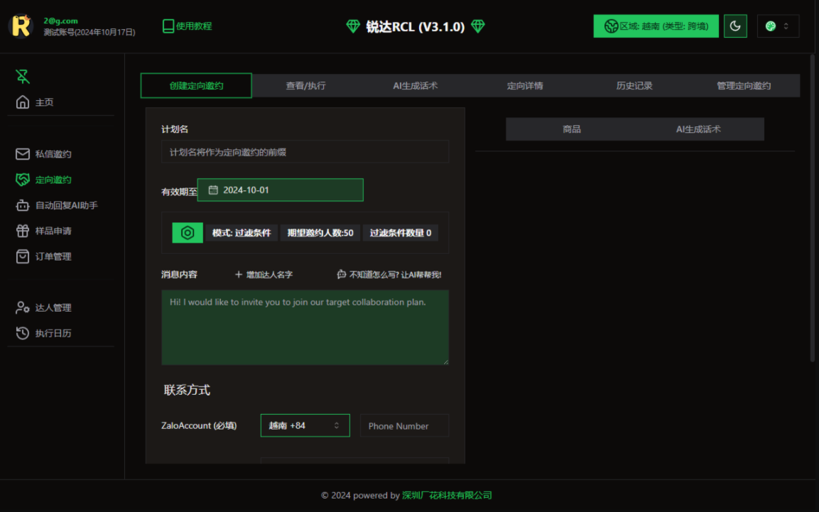 ??AI賦能,告別私信:定向消息模版, 支持自動(dòng)回復(fù)達(dá)人消息。 7*24與達(dá)人溝通, 告別翻譯, 告別時(shí)差