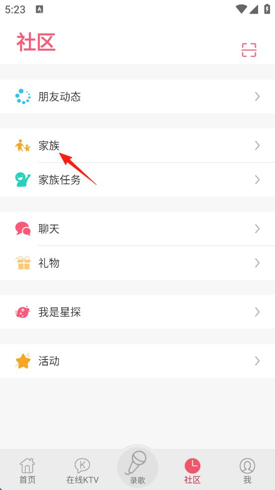 2、點擊屏幕左側的“家族”。