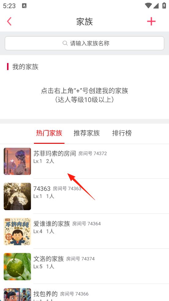 3、直接點擊自己想進入的家族。