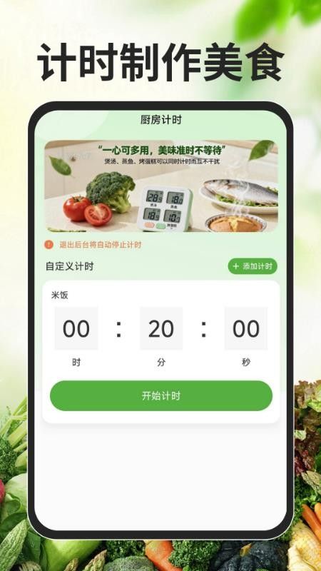 可自定義計時制作美食,將美食的制作時間進(jìn)行實時計時,用戶可隨時了解美食制作時長。