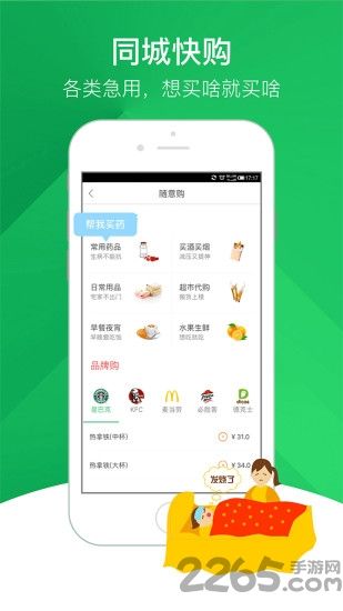 同城代買:早餐夜宵、水果生鮮、超市藥店、各類急用,全城幫買,急速送達(dá)。