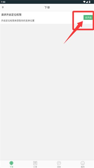 2、進(jìn)入下單頁面后,點擊開啟定位權(quán)限獲取您當(dāng)前所在位置。