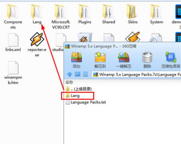 2、將漢化文件“Lang”復(fù)制到軟件的安裝路徑中,默認(rèn)路徑為“C:\Program Files (x86)\Winamp”文件,如下圖所示: