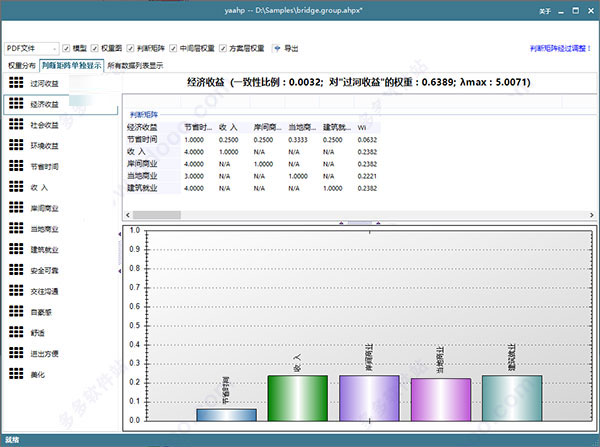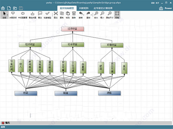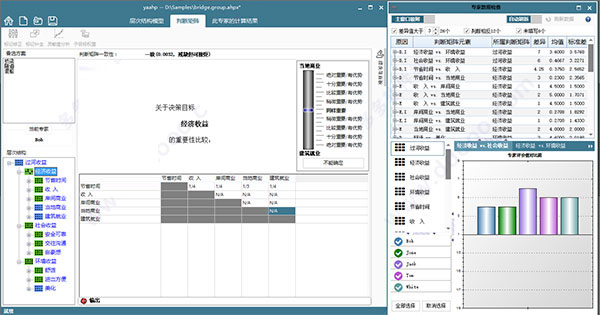yaahp是一款具有簡(jiǎn)潔tab整合界面風(fēng)格的層次分析法軟件,由山西元決策軟件科技有限公司出品。能夠根據(jù)商務(wù)數(shù)據(jù),科學(xué)的進(jìn)行資源分配、收益成本分析、商業(yè)評(píng)估等操作,可支持層次模型繪制、數(shù)據(jù)比較、矩陣數(shù)據(jù)錄入、不一致判斷矩陣自動(dòng)修正、殘缺但可接受判斷矩陣及總目標(biāo)或子目標(biāo)排序權(quán)重計(jì)算功能,幫助用戶無(wú)需深入理解也能使用層次分析法進(jìn)行決策。此外,yaahp(層次分析法軟件)作為一款已經(jīng)開(kāi)發(fā)更新10年以上的國(guó)內(nèi)知名軟件,它還可以管理參與決策的專家信息以及他們提供的決策數(shù)據(jù),并將決策數(shù)據(jù)集結(jié)后反饋給用戶使用,歡迎有需求的朋友前來(lái)免費(fèi)下載。
