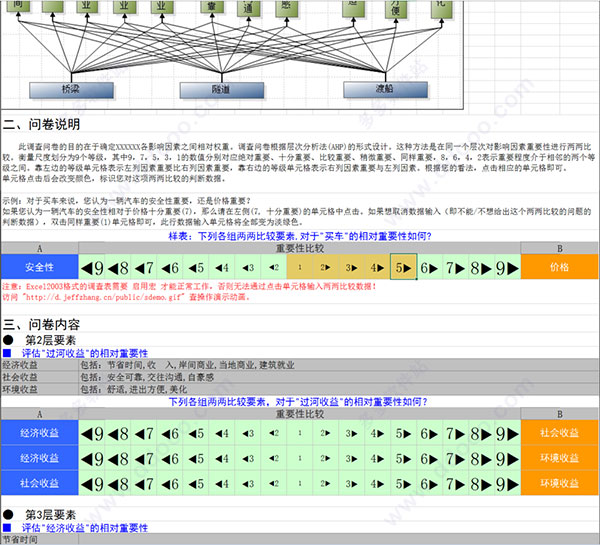 ②yaahp還可以生成Excel格式的可導(dǎo)入的調(diào)查表格式,這種格式的調(diào)查表回收后,可以方便地導(dǎo)入的專家決策數(shù)據(jù),大大降低數(shù)據(jù)輸入的工作量。