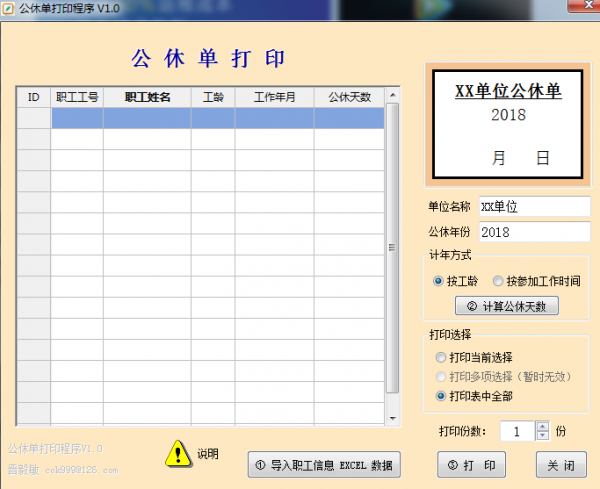 公休單打印程序 v1.0 免費(fèi)綠色版526KB / 12-13