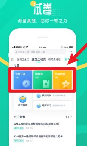 2、在主界面選擇對應(yīng)考試類別后,可查看答題記錄、錯題集及收藏題目等內(nèi)容進(jìn)行高效復(fù)習(xí)管理。