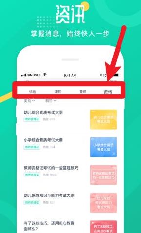 3、點(diǎn)擊上方“資訊”欄目,即可瀏覽各類最新考試資訊、考試技巧及政策動態(tài),實(shí)時掌握考試信息。