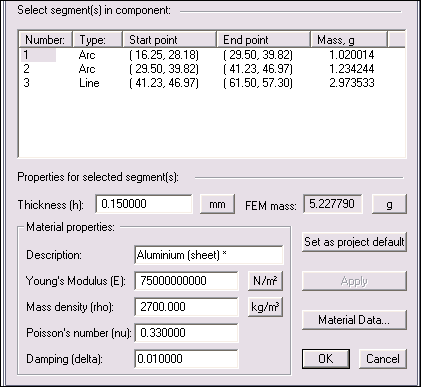這個音盆的材料被選為鋁箔片。這個 * 符號表示數(shù)據(jù)庫中的材料被改變了。它的阻尼 從0.05增加到了 0.1。這是為了正確的模擬實際的喇叭材料。