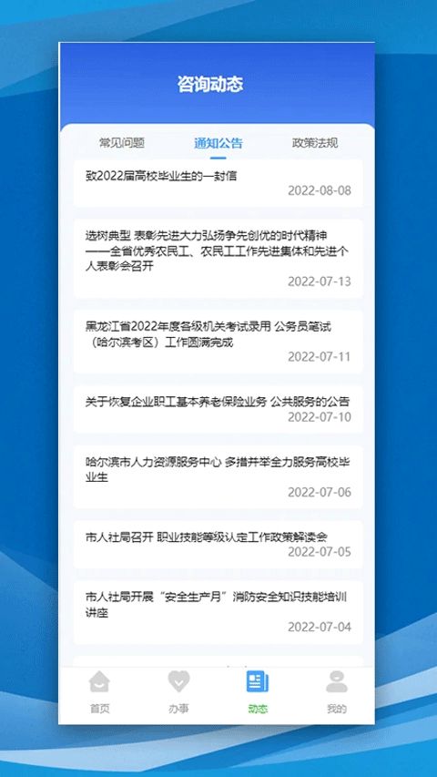 哈爾濱智慧人社app是一款為哈爾濱市民打造的社保業(yè)務(wù)辦理平臺(tái),用戶可以在手機(jī)軟件上了解實(shí)時(shí)公告通知,政策法規(guī),還有個(gè)人檔案和就業(yè)等等相關(guān)服務(wù)問(wèn)題,功能比較詳細(xì)。能為市民提供許多便捷的人社服務(wù),讓市民能使用手機(jī)便捷的辦理事情,為市民的生活提供更好的便捷服務(wù)。