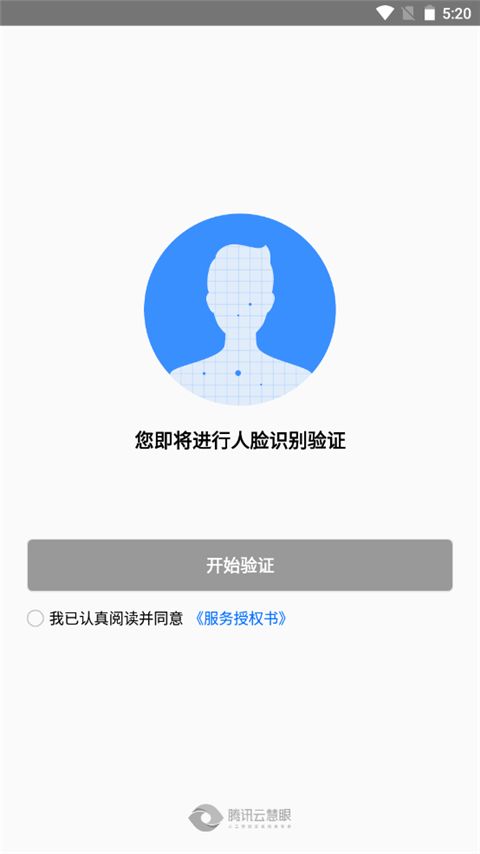 4、注冊(cè)完后,用戶就會(huì)進(jìn)入人臉識(shí)別認(rèn)證,勾選我同意授權(quán)書,點(diǎn)擊開(kāi)始驗(yàn)證。
