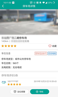 進入之后用戶就能對該停車場有一個具體的了解,具體車位數(shù)、是否收費等。