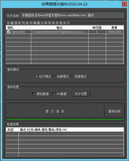 1)渲染模式:根據(jù)需要選擇經(jīng)濟、加速、極速任一模式;