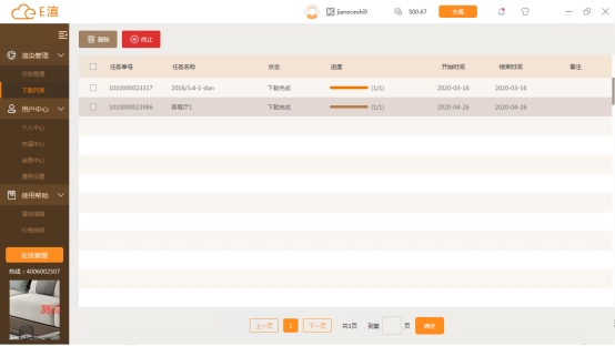 下載列表主要顯示手動下載的任務信息,包括單號、任務名稱、狀態(tài)、進度、開始時間、結束時間。