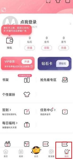 1、打開手機找到看漫,并且打開進入軟件,選擇右下角【我的】點擊進入