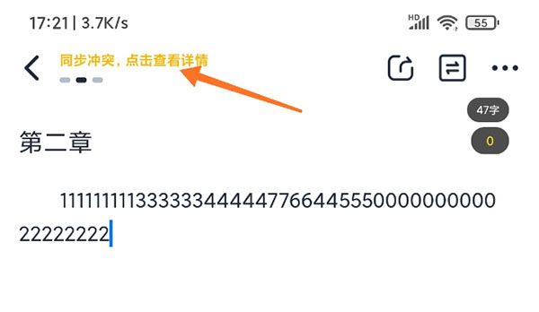 此問題可能是云端內(nèi)容和本地內(nèi)容產(chǎn)生沖突,或多端內(nèi)容沖突,比如兩個(gè)客戶端同時(shí)在寫的時(shí)候,就有可能會(huì)產(chǎn)生內(nèi)容沖突。以下示范以手機(jī)端為例,電腦端基本同理: