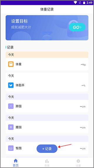 1、打開軟件進(jìn)入到軟件首頁后,會(huì)看到“+記錄”按鈕,點(diǎn)擊它;